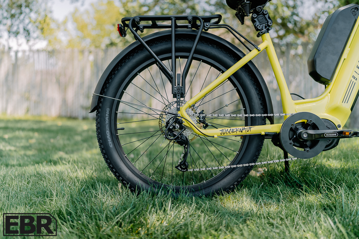 The Biktrix Juggernaut Ultra Duo 4 has a staggering number of decisions to make at the time of purchase. You can start by choosing between two frame styles: Step-Through or Step-Over, with sizing options of Medium (for riders 5’6” and above) and Large (for those 5’10” and above). The bike comes in several standard colors like Emerald Green, Satin Black, Azure Blue, Black Cherry, and Pearl White. However, if you’re looking for something more unique, there’s an upgrade option with 188 additional colors available for $300. The max payload of the bike is 380 lbs, giving room for extra gear on your rides.