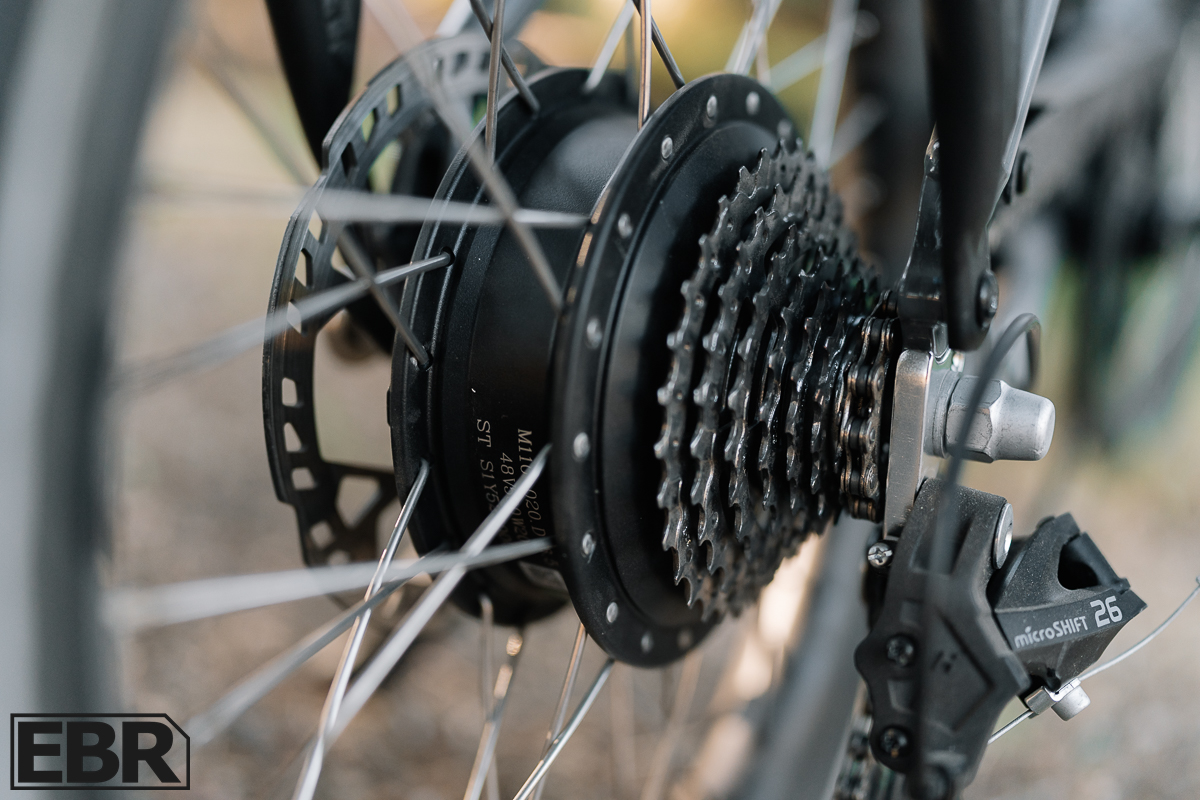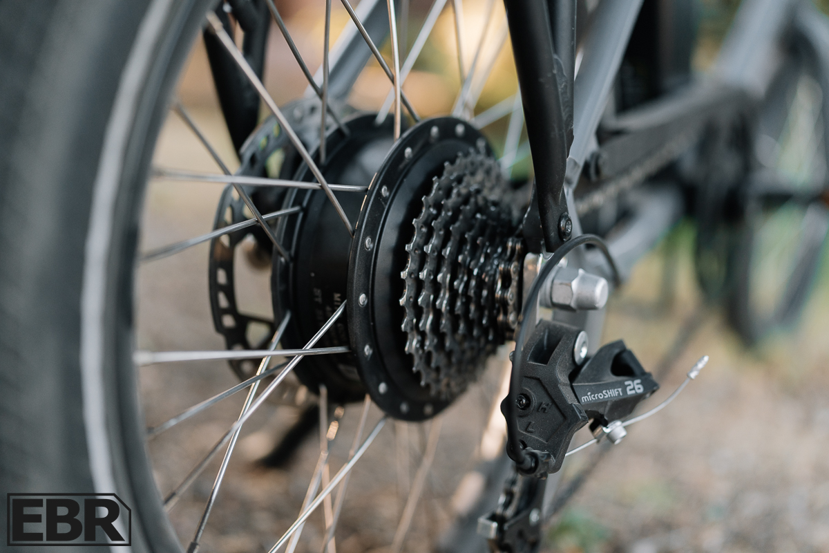 The bike can switch between Class 2 and 3, hitting speeds up to 28 mph. While the 8-speed drivetrain starts ghost pedaling around 18 mph, the throttle will take you the rest of the way to 28 mph without a hitch. It’s a solid setup, though you’ll be relying on the throttle for higher speeds.