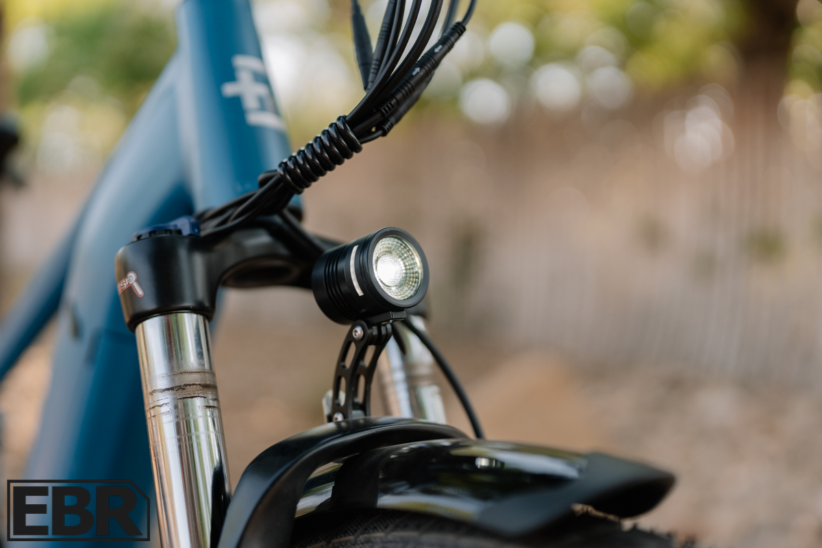 Fenders come standard (our test unit had metal fenders despite EVELO’s website listing composite), there are mounting points for a rear rack and water bottle cage, and EVELO includes a branded water bottle. Front and rear LED lights are also included. The overall component package is built around long-term reliability and low maintenance rather than flashy specs, exactly the right priority list for riders who want a bike that just works.