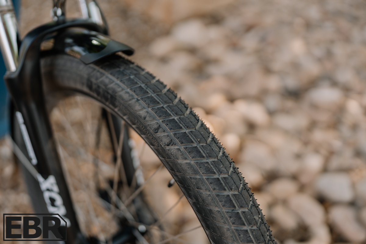 I’m genuinely impressed by the drivetrain setup. The Gates Carbon belt runs silently and eliminates the threat of greasy pant legs. The twist-grip Enviolo CVT keeps me in the right gear no matter what I’m doing. Is there a learning curve? Sure, but once you get it, it’s a really sweet setup without the hassle or headache of a rear derailleur and all the drama that can come with one. Want to shift on the go as you’re heading uphill? Do it, no concerns about shifting under load here. Want to shift back to a better starting gear while waiting at a stoplight? Go for it. You can shift at 0 mph just as easily as at 28 mph. The usage is really flexible, and there’s no clunky gear changing, it’s just buttery smooth and intuitive.