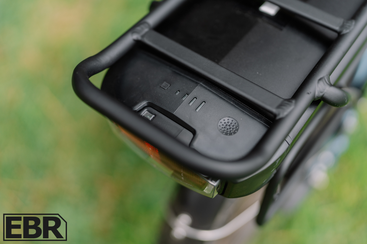 At just 7 pounds, it’s a slim package that doesn’t bloat the frame tubing like some e-bikes do when they try to hide their batteries inside. In my opinion, it’s the best of both worlds: no awkward design with fat frame tubes, and the current placement under the rear rack just blends in visually. You get the convenience of a removable battery without sacrificing aesthetics.