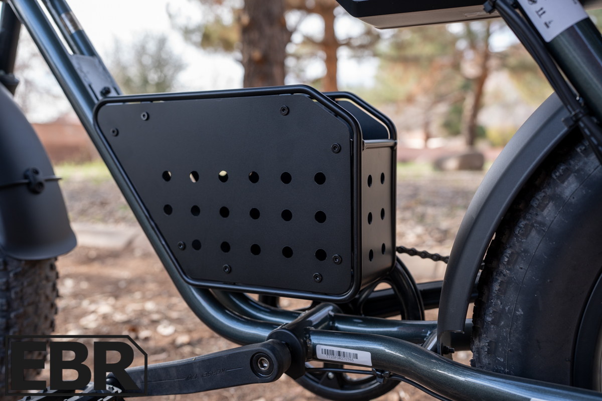 The cassette is a 14-28T with a 48T chainring that gives a nice range of gears to work through for varied terrain. In my opinion, it’s a bit of overkill. A bike like this doesn’t really have long leg extension for proper pedal stroke and for most folks this will be a throttle rig, not something where pedaling is the focus and gear changes help riders get through tougher hills as they ride. The Ranger is meant to be throttled around and a single speed chain drive or a single speed belt drive would likely be the best bet here. But it’s never a bad thing to have more, it’s just not really needed here.