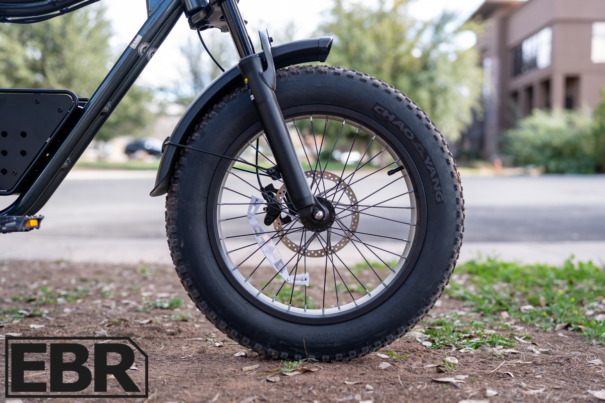The wheels and tires are an appropriately themed all terrain moto setup with 20×4″ Chaoyang tires that look ready to tackle whatever your plans could be, from downtown commutes to weekend trail rides, even some mud. It’s important to keep in mind the tires are all-terrains so they will have a bit of a big tire ‘hum’ on pavement like bigger trucks do. It’s not a fault of the tires, just a real-world byproduct.