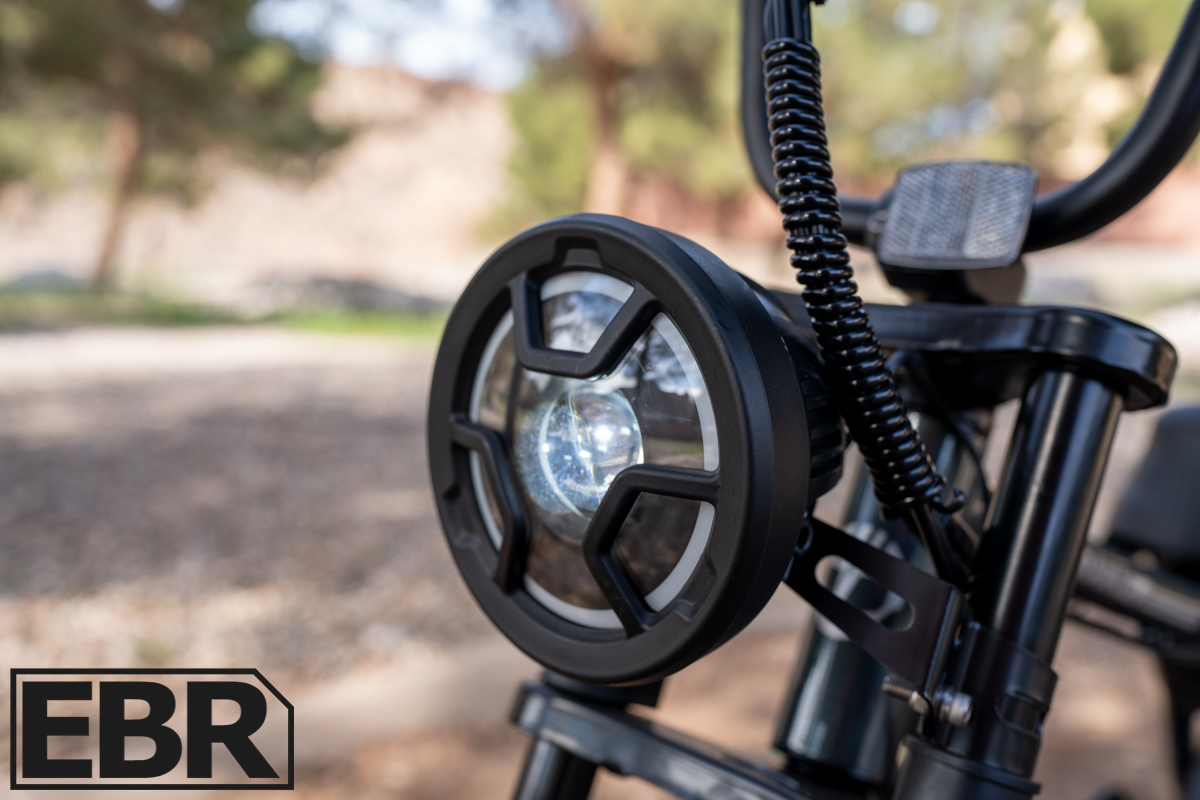 - The large front moto LED headlight, tail light, and included fenders are a nice touch.