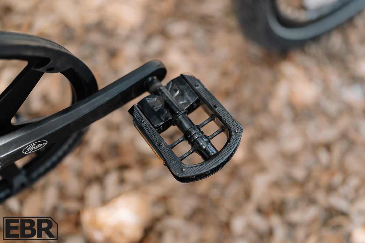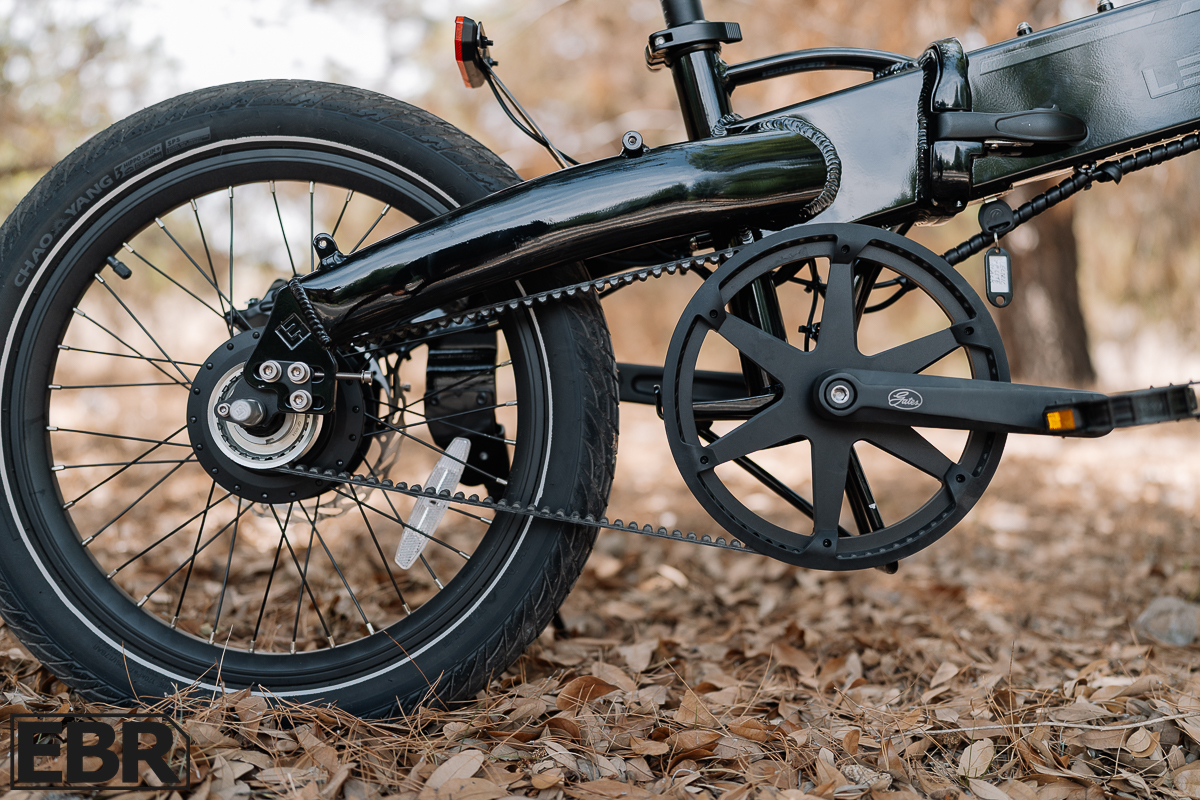 - The 20 x 2.4-in., low-profile tread tires offer a smoother ride and lower rolling resistance, which helped increase this e-bike’s efficiency.