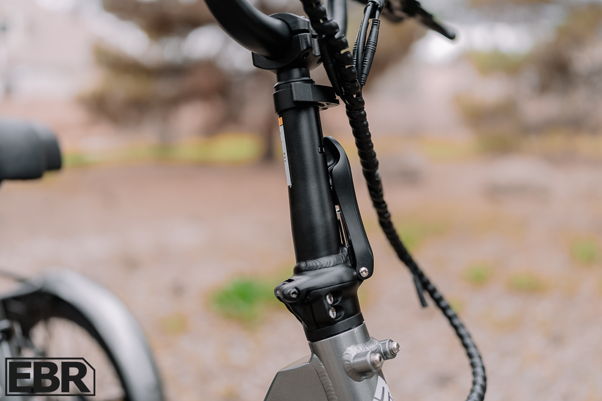 On the comfort front, you’re getting a wide saddle with back support, ergonomic grips, and BMX-style handlebars spanning 25 inches. No suspension here, but the fat tires help soak up some road buzz. The cockpit’s straightforward with a right-side twist throttle, and the folding stem adds some practicality for storage.