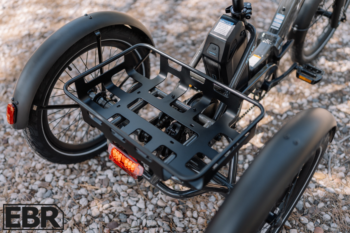 The Trike2’s power comes from the 48V system powering a 500W rear hub motor.