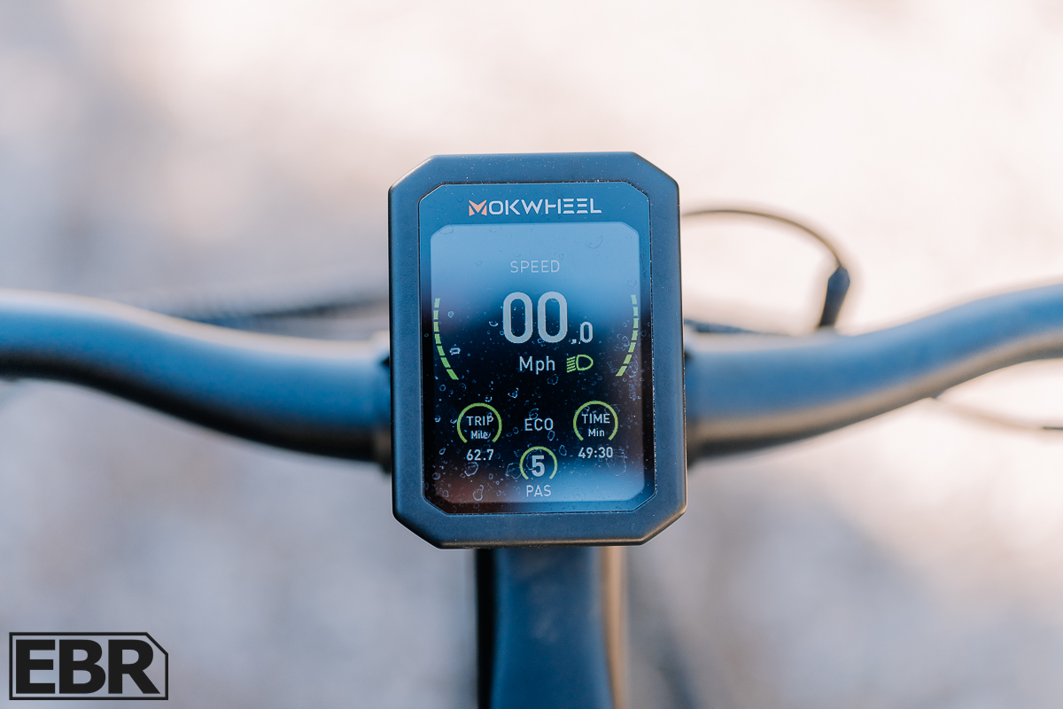 The Mokwheel Basalt comes with a color display that’s impressively easy to read, even in bright sunlight. The contrasting colors make all your key ride data clear, so you’re not struggling to check your stats while on the move. The main screen shows all the essentials—odometer, speed, battery level, ride time, headlight status, and current pedal-assist level—laid out in a clean and uncluttered way.