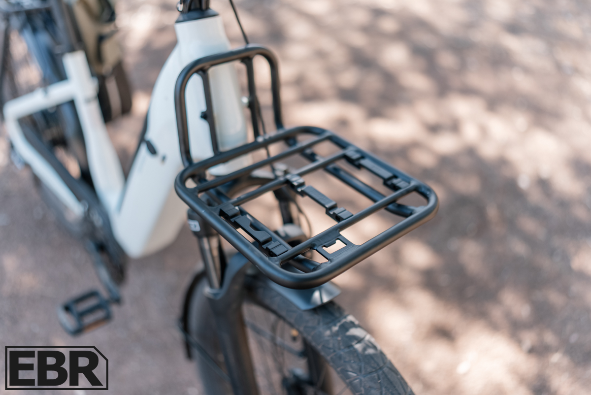 - Step-through frame design makes it easy to mount and dismount, especially when loaded with extra weight.