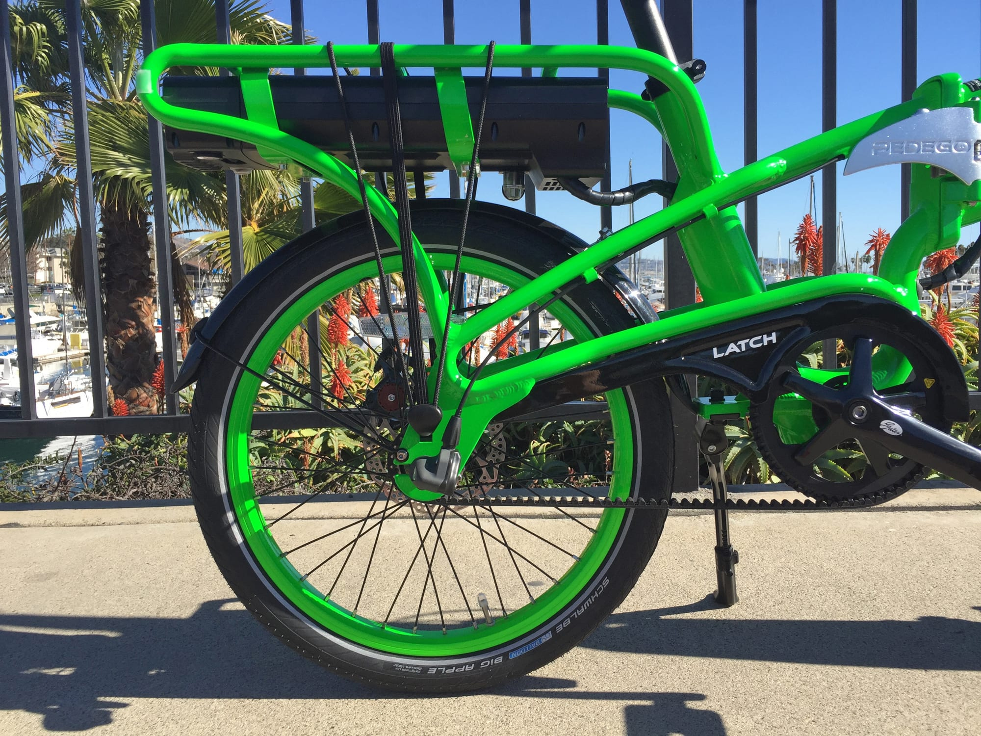 - Pedego does a great job with visibility and safety, the Latch has reflective tape on the tires, reflectors on the pedals and integrated LED lights front and rear