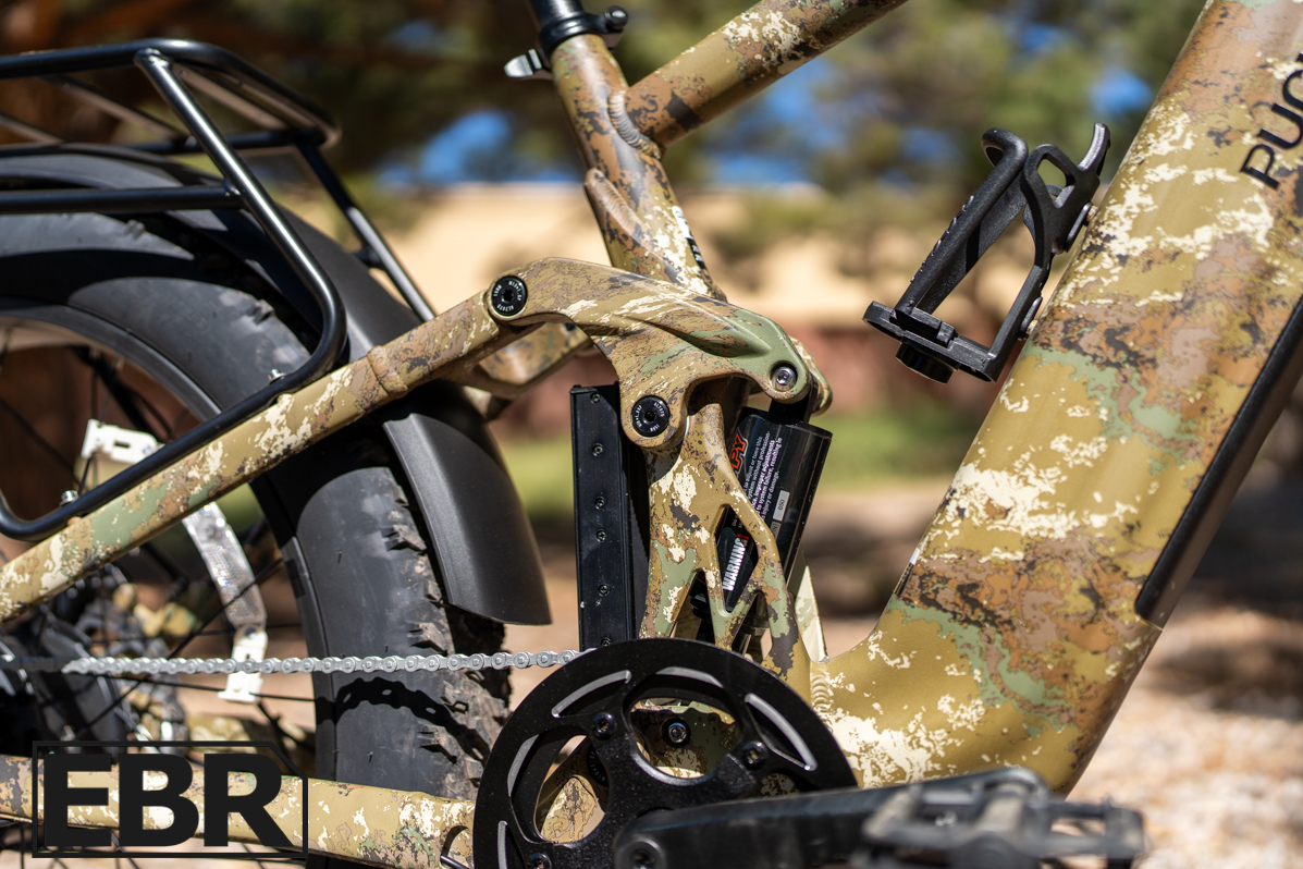 Kitted with 130mm of travel up front and 50mm in the rear and rolling on 4-inch fatties, it’s clear the GoldenR Pro is looking to get rowdy off-road on the weekends. However, PuckiPuppy included lots of everyday practical features like fenders, a rear rack, and front to back lighting with turn signals, flexing its ability to do double-duty as a weekday commuter as well.