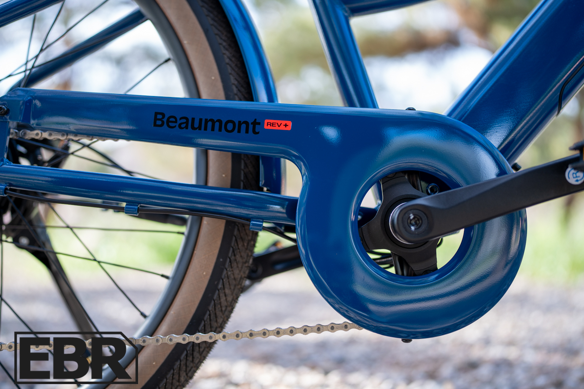 Starting with the motor, it’s a rear hub made by Ananda that’s rated at 500W’s and can push 65Nm of torque. Activating the pedal assist is a torque sensor for a more natural pedaling feel, and you have 4 pedal assist modes to cruise in. This setup of 500W’s and 65Nm of torque gives the Beaumont Rev+ a unique ability to do double-duty as a relaxed cruiser, but still keeping the grunt it needs to hang in morning commutes and ascend decent elevation gains.