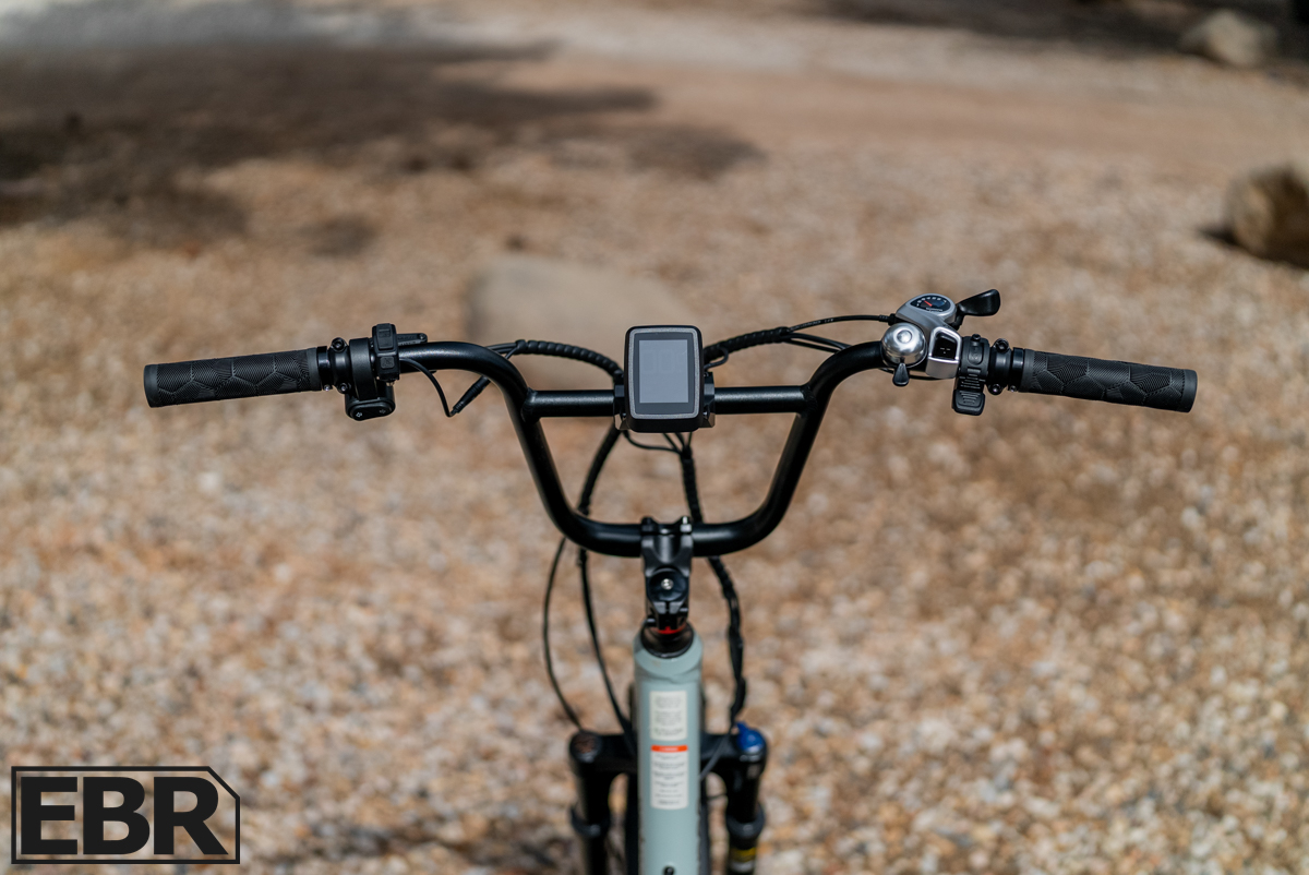 The Roo Rev uses a 2.5-inch full color TFT display as part of Retrospec’s Ananda e-system setup. It’s mounted center on the handlebars where you can glance down and see what’s happening without taking your eyes off the road for too long. The screen size hits a good balance, large enough to read clearly while riding but not so oversized that it looks silly or gets in the way.