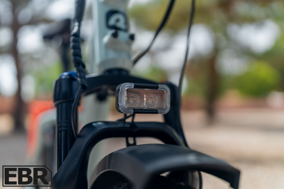 The bike comes ready to roll with a rear cargo rack rated for 60 pounds, integrated front and rear lighting with automatic function and turn signals, full fenders, and a center kickstand. The lights tie into the bike’s electrical system so they turn on automatically when you power up the bike, and the brake light function activates when you pull the brake levers. Having turn signals front and rear is a nice safety feature that’s not standard on most cargo bikes in this price range.