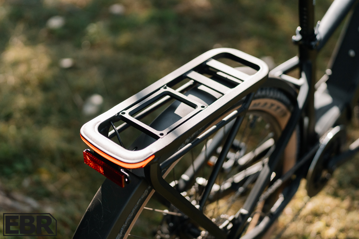 The Prodigy V2’s commuter soul really shines through with its practical features. From the integrated front and rear lighting, full-coverage fenders, and sturdy rear rack, this bike is clearly designed to handle the daily grind while keeping you visible, dry, and ready to carry gear or groceries. It’s built to handle real-world commuting needs without sacrificing performance.