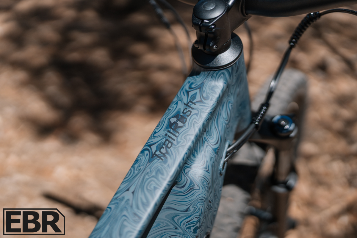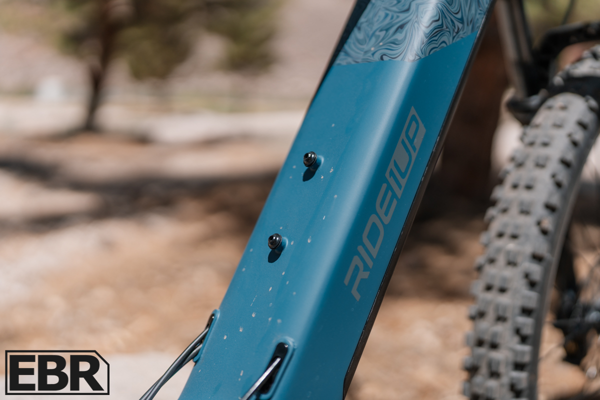 At this time, Ride1Up hasn’t announced any specific accessories for the TrailRush, but that might change since the bike just launched. On the flip side, you’ve got mounting bosses on both the downtube and seat tube, so you can add your own bottle cages or whatever accessories you want to run. It’s a clean setup that gives you flexibility without forcing you into their accessory ecosystem.