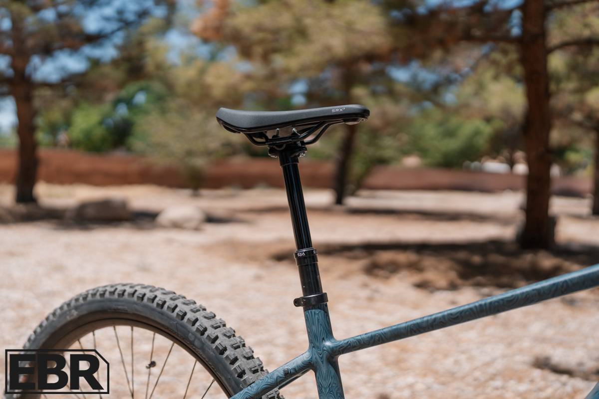 The Exaform KSP900 dropper gives you 150mm of drop, which is plenty for getting out of the way on descents. It’s become essential gear for any serious trail bike, and this much travel makes a real difference in how you can ride technical stuff.