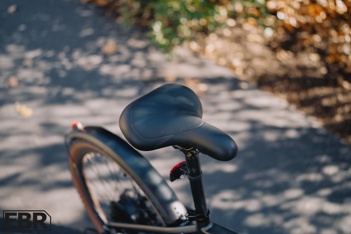Frame design includes the essentials for a touring-capable bike: mounting points for fenders (which come included), a few bosses on the seat tube, and attachment points for a rear rack. Speaking of racks, Ride1Up offers a solid menu of add-ons including their own rear rack, basket, and pannier setup if you’re looking to maximize cargo capacity.