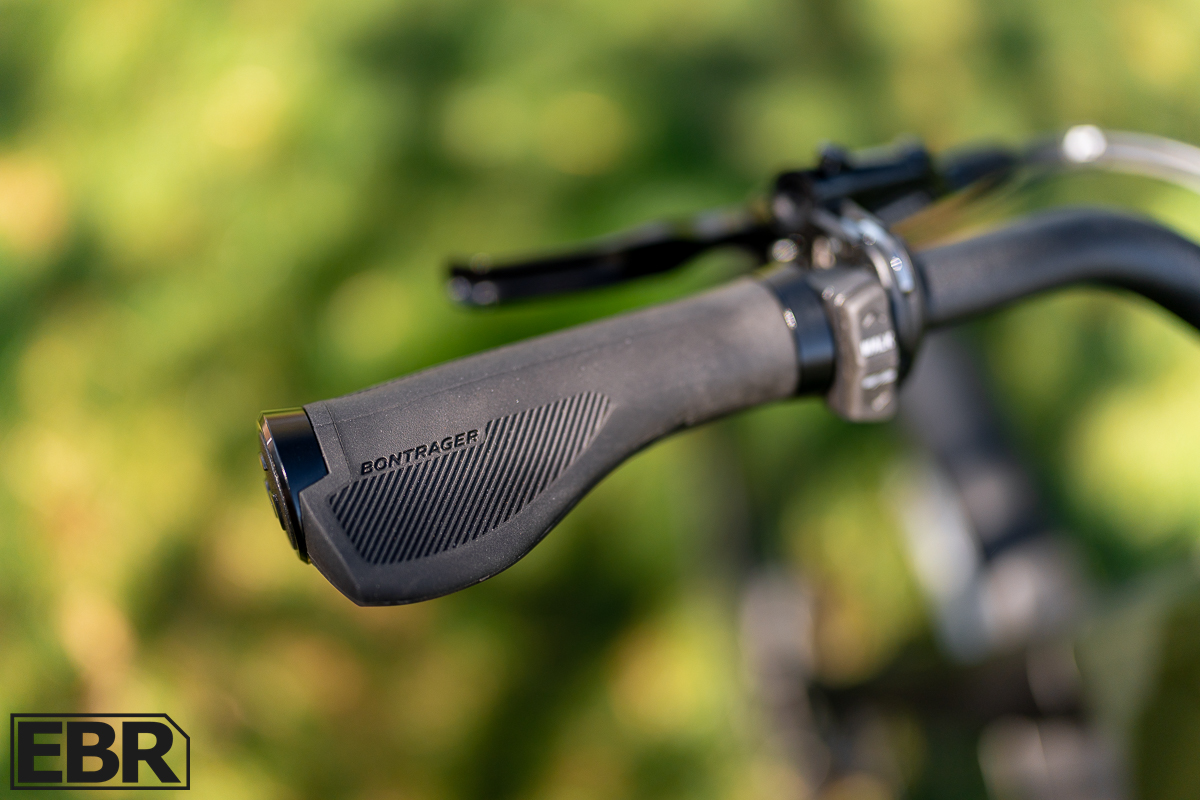 Bontrager Satellite Elite alloy lock-on grips provide comfort, while Shimano hydraulic disc brakes (RS600 lever, RS405 2-Piston caliper) with Shimano SM-RT64 (180mm up front) and RT-EM600 (160mm in the back) centerlock rotors cover the braking power.