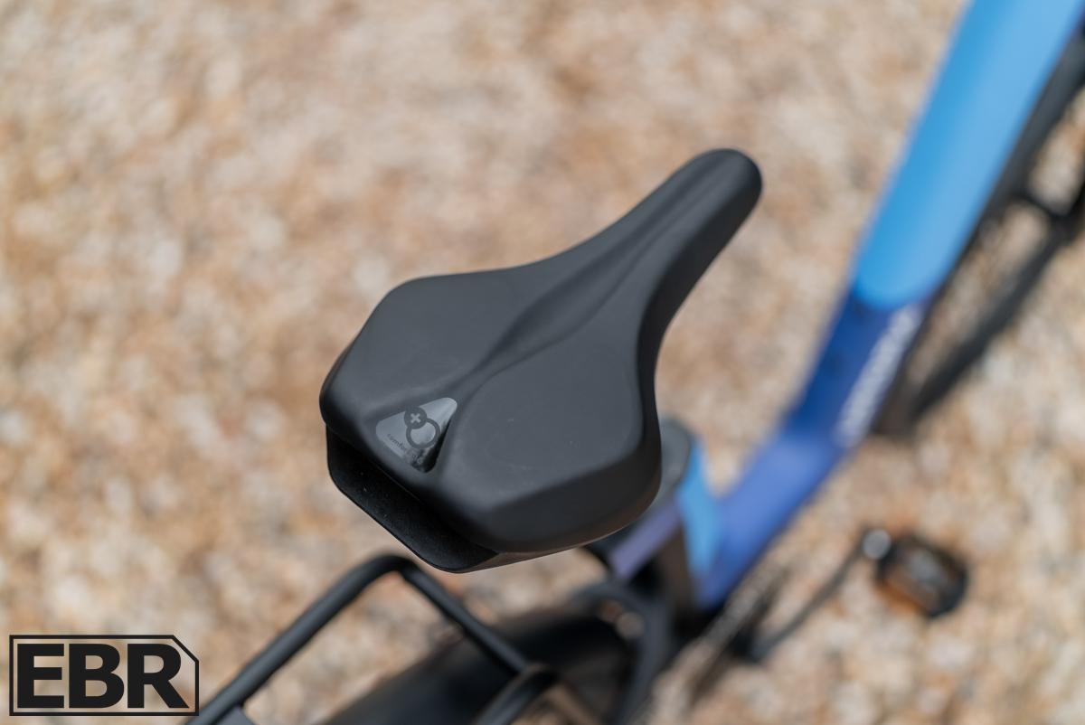 Let’s start with the frame and geometry, as that was the first thing that stood out to me. The J-shaped step-through frame has a unique look (I can’t stop picturing the saxophone emoji shape), but the real-world ride translates to a surprisingly smooth and enjoyable experience.
