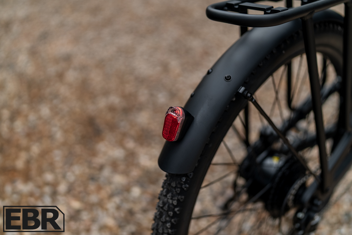 The included freebies with your Carbon Fusion Pro purchase extend well beyond the 4A fast charger and key set for battery removal. You also get front and rear fenders (alloy, painted black), a kickstand, and front-to-back lighting, specifically a 40-lux LED headlight and StVZO-compliant rear tail light. It’s a solid package that gets you road-ready right out of the box.