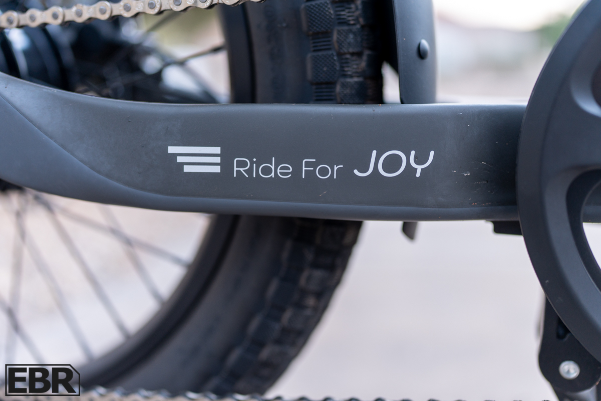 This bike shares the same motor, battery, and basic geometry as the original Carbon Joy. The Ultra trims a few pounds by replacing the suspension fork with a rigid carbon fork. That change shifts the bike slightly toward a cruiser feel with lighter steering and a simpler overall setup while the utility capability remains intact.