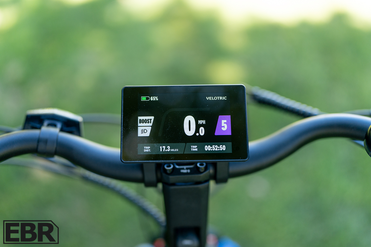 Velotric’s color display on the Discover 1 offers a 3.5-in. color screen. Riders can look at functions like current speed, miles covered, remaining range (an estimate) and more. One of the features of the display is Bluetooth connectivity, which is how it communicates with the smartphone app. The app allows riders to customize riding modes and motor performance, as well as select which class of operation you prefer. Users can make the lights either turn on automatically or leave it to manual operation. Do you want throttle speeds to be determined by the PAS levels? That’s how most e-bikes operate, but the Discover 2 gives you a choice.