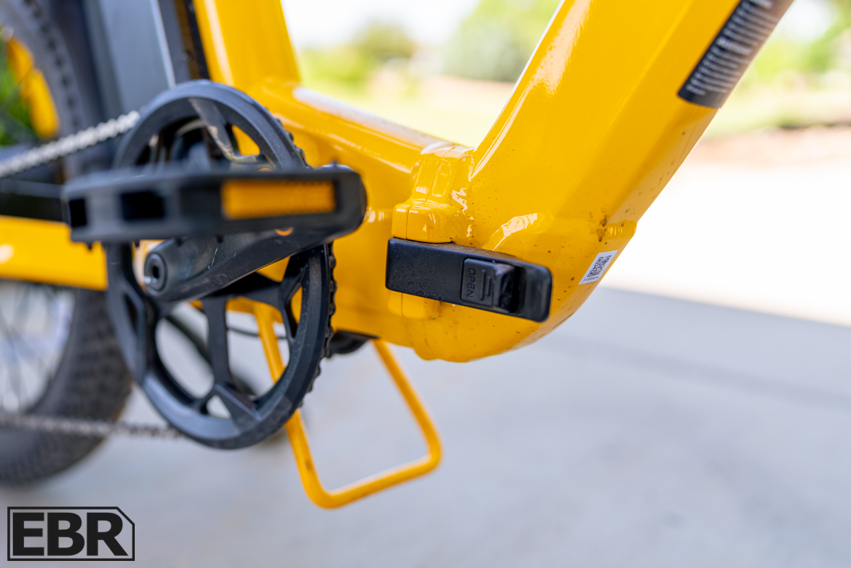 This placement is out of sight to the rider but I think helps with the bike’s center of gravity and handling. The battery locks securely in place but removes easily for off-bike charging or security when parking with the provided keys that come with the Fold 1 Plus.