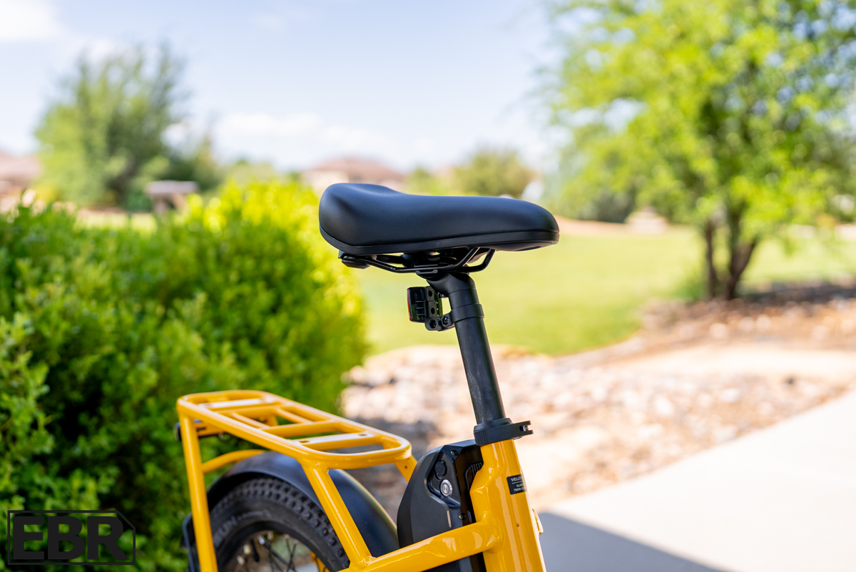 The riding position stays true to Velotric’s fold series philosophy—upright with a slight forward lean toward the handlebars. The wide, plush “urban comfort ergonomic” saddle does a solid job supporting your sit bones and lower back during longer rides. Combined with the adjustable components, it creates a comfortable setup for most riders.