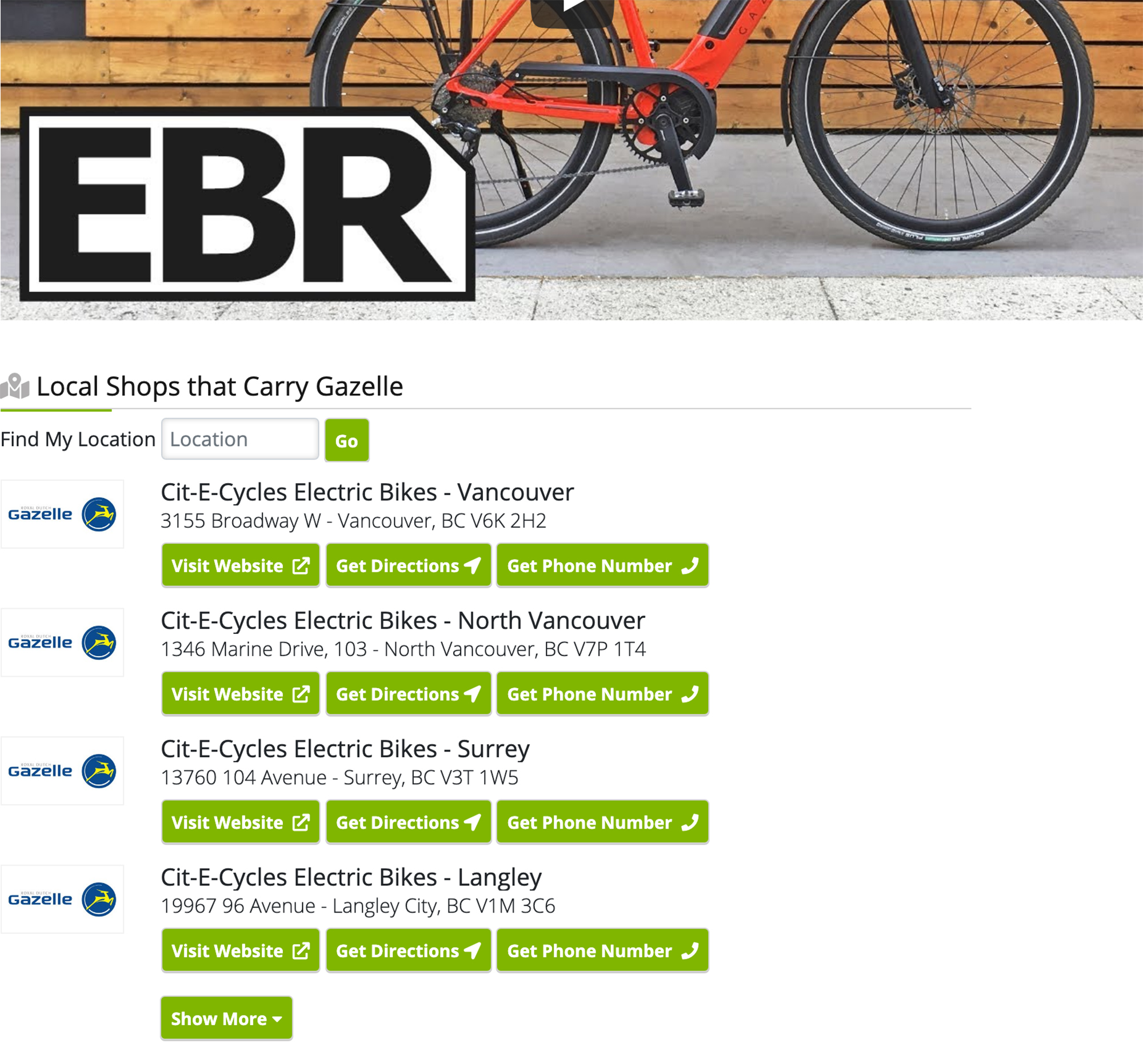 Every day, tens of thousands visit ElectricBikeReview.com with the aim of selecting the perfect product for their lifestyle and budget. But that’s only the beginning! Where will they actually buy their Ebike, accessories, and cycling gear? Well, our local listing service is designed to highlight the nearest, most relevant shops for a seamless handoff.